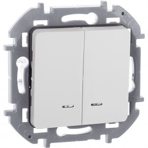 Выключатель 2-клавишный с подсветкой/индикацией 10АХ безвинтовое крепление белый INSPIRIA