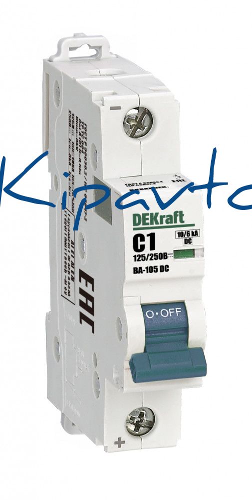 Автоматический выключатель серии ВА-105 DC DEKraft, 1P, ном. ток 1 А, характеристика C, откл. способность Icn 10 кА при 125 В/6 кА при 250 В, установка - на DIN-рейку, ширина - 1 мод. х 18 мм. Выключатели ВА-105 DC применяются для защиты от перегрузки и КЗ в цепях постоянного тока, в частности в системах автоматизации и управления, транспорта, генерации и распределения электроэнергии и др. Окошко-индикатор всегда показывает состояние аппарата вне зависимости от положения рукоятки управления.
