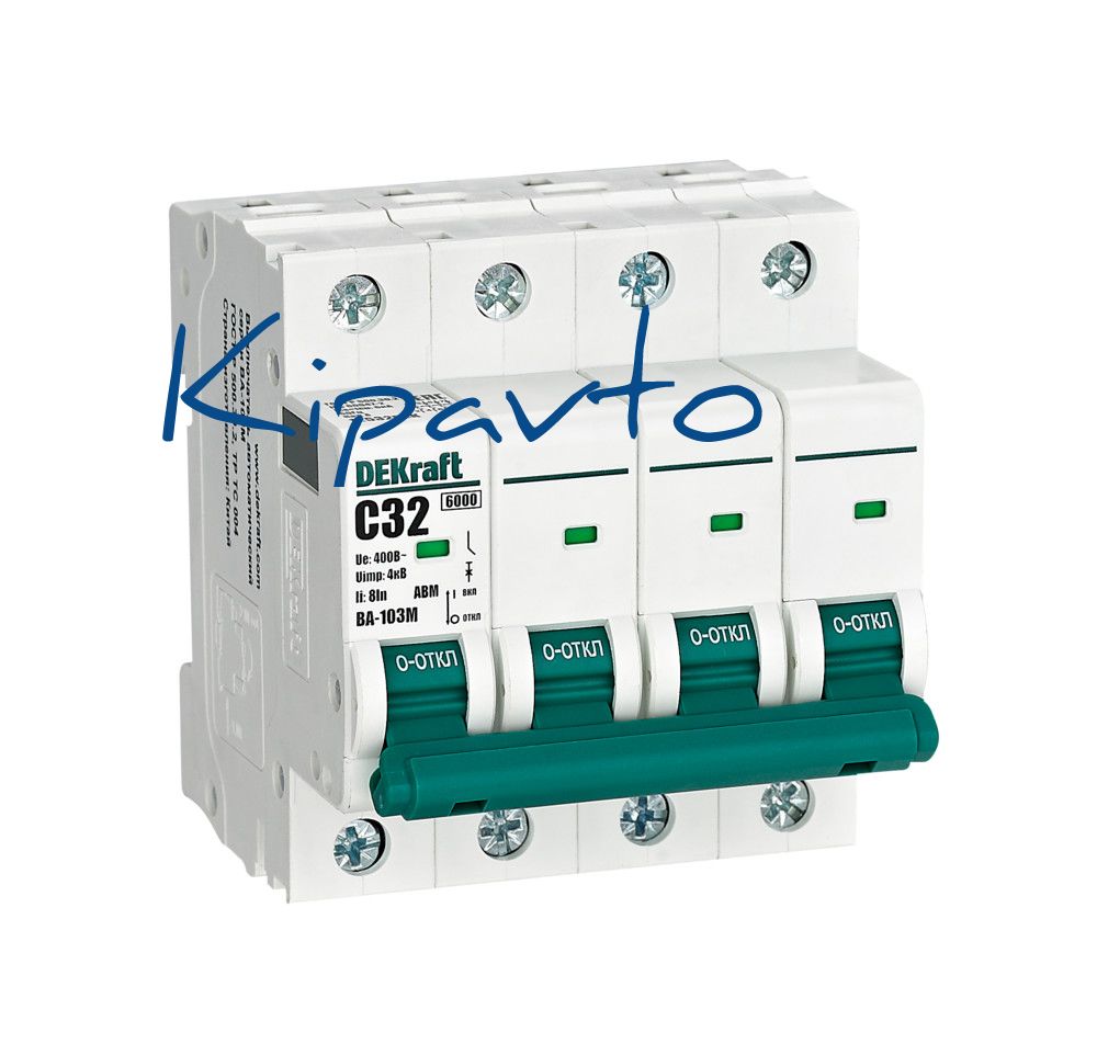 Автоматический выключатель без теплозащиты серии ВА-103M Dekraft, 4P, ном. ток 32 А, ном. раб. напряжение 400 В, кривая отключения C. Автоматические выключатели серии ВА-103М имеют специальное назначение для систем противопожарной защиты и вентиляции и выдерживают ток КЗ до 6000 А. Также они могут использоваться для нечастых оперативных включений и отключений указанных цепей. Автоматические выключатели соответствуют директиве RoHS, имеют расширенный диапазон рабочих температур от -25 до +60 °C, удобны и безопасны в эксплуатации.