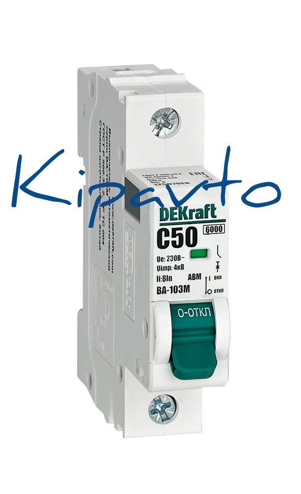 Автоматический выключатель без теплозащиты серии ВА-103M Dekraft, 1P, ном. ток 50 А, ном. раб. напряжение 230 В, кривая отключения C. Автоматические выключатели серии ВА-103М имеют специальное назначение для систем противопожарной защиты и вентиляции и выдерживают ток КЗ до 6000 А. Также они могут использоваться для нечастых оперативных включений и отключений указанных цепей. Автоматические выключатели соответствуют директиве RoHS, имеют расширенный диапазон рабочих температур от -25 до +60 °C, удобны и безопасны в эксплуатации.