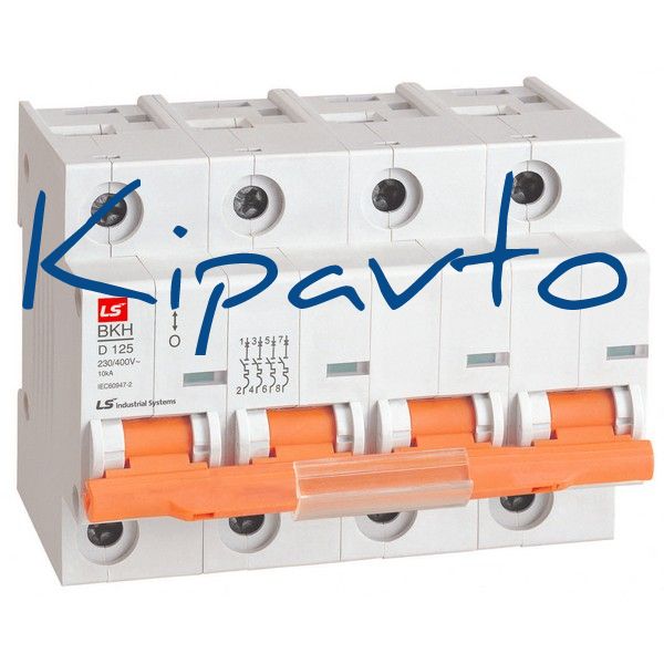 Модульный четырехполюсный автоматический выключатель BKH номиналом 100 A с характеристикой расцепителя ''D'' и отключающей способностью 10 кА предназначен для применения в электрических цепях напряжением до 400 В переменного тока частоты 50 Гц, их защиты при перегрузках и коротких замыканиях, проведения тока в нормальном режиме и оперативного включения и отключения указанных цепей.