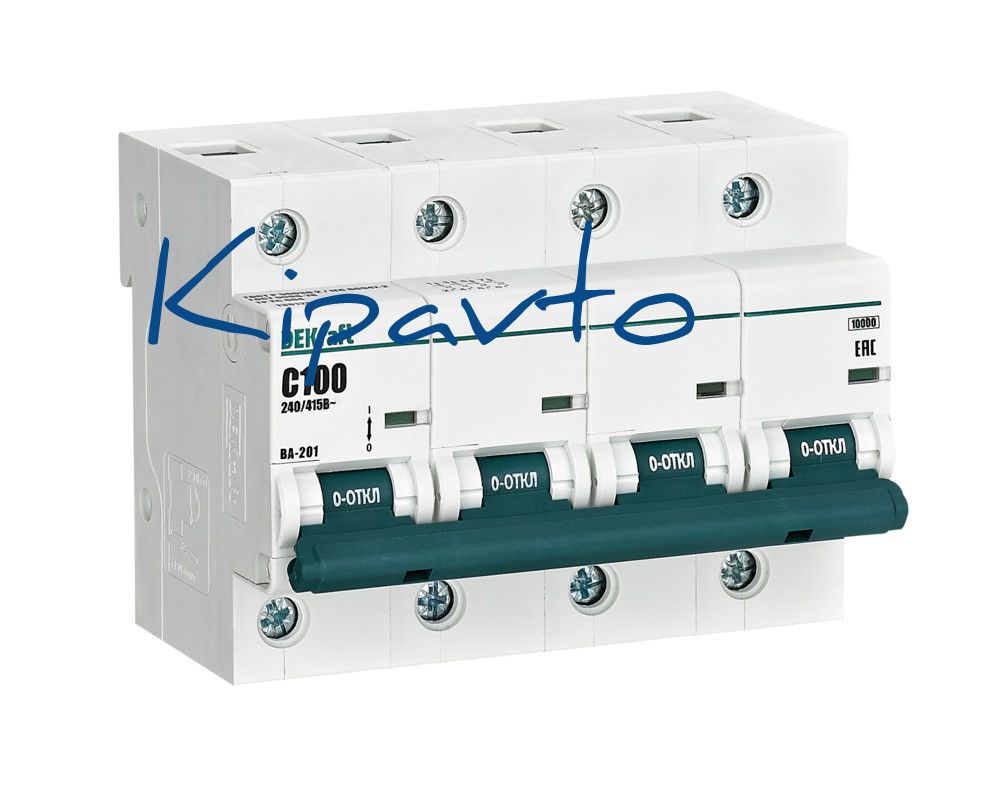 Автоматический выключатель серии ВА-201 DEKraft, 4P, номинальный ток 100 А, характеристика С, отключающая способность 10 кА, ширина - 6 мод. х 18мм. Монолитная лицевая панель обеспечивает безопасную эксплуатацию аппарата. Окошко-индикатор всегда показывает состояние аппарата вне зависимости от положения рукоятки управления. Двухпозиционная защелка облегчает монтаж выключателя. Клеммы рассчитаны на подключение проводников сечением до 35 кв. мм.