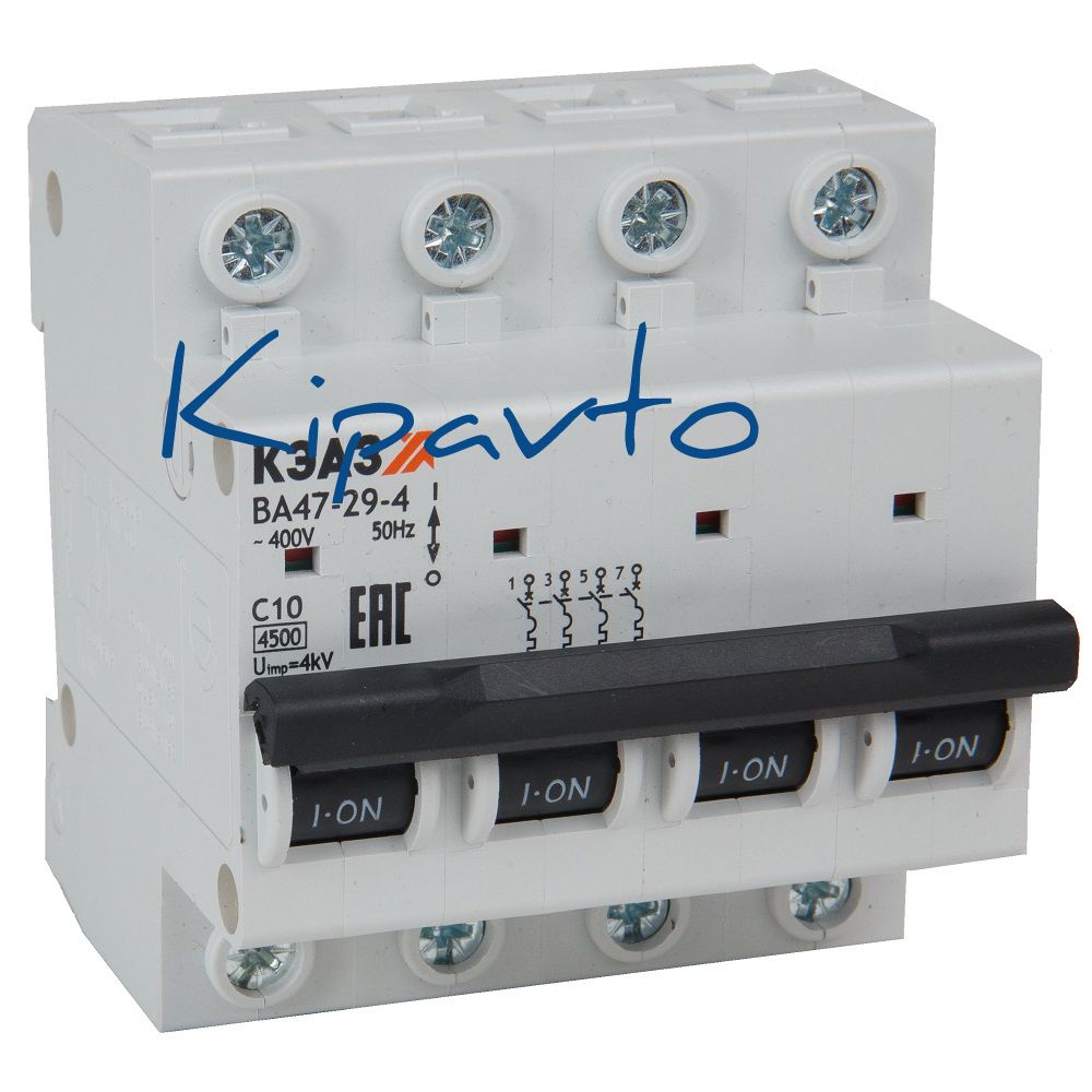 Модульный автоматический 4 полюсный выключатель переменного тока с предельной коммутационной способностью при переменном токе 4.5 кА на номинальный ток 63 А . Модульные автоматические выключатели КЭАЗ на токи до 63А защищают оборудование от токов перегрузки и короткого замыкания в системах распределения электроэнергии. Автомат ВА 47-29 специально разработан для использования в экономичных решениях с ограниченным бюджетом.