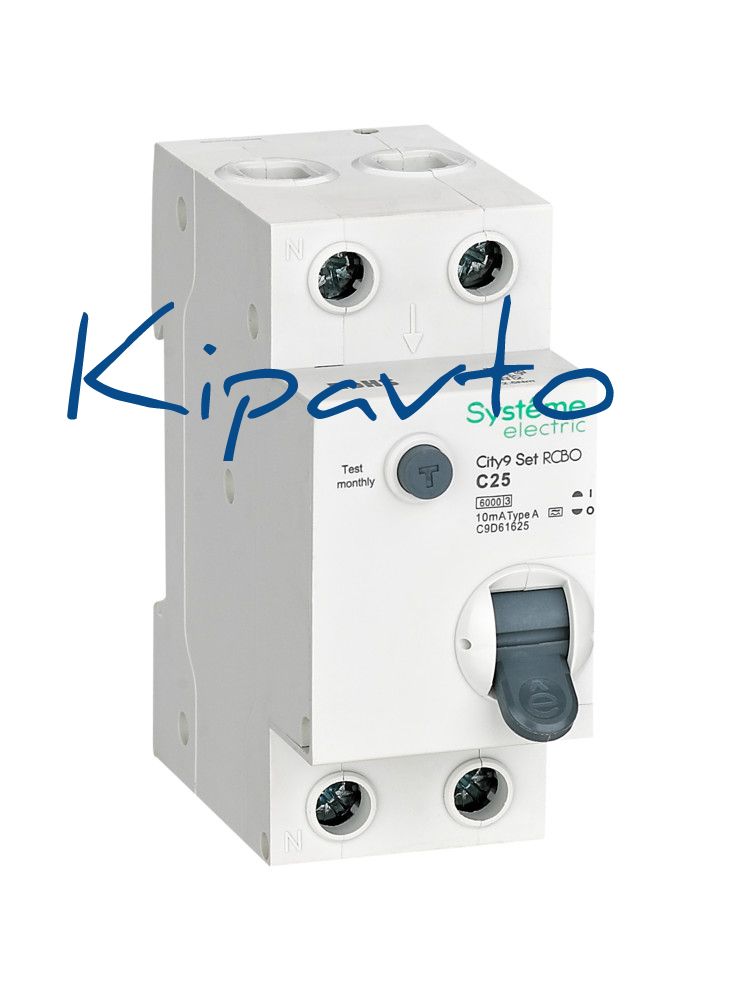Автоматические выключатели дифференциального тока (АВДТ) серии City9 Set Systeme Electric,1P+N, номинальный ток 25 А, характеристика С, Icn - 6 кА, ток утечки 10 мА, тип А. АВДТ применяется в электрических сетях напряжением 230В. Предназначен для защиты сети от перегрузок, людей от поражения электрическим током и токов короткого замыкания. Уставка по току утечки 10 мА обеспечивает гарантированную защиту людей при прямом прикосновении. Кнопка тест обеспечивает проверку работоспособности аппарата. Крепление на DIN-рейку шириной 35 мм. Безопасные клеммы.