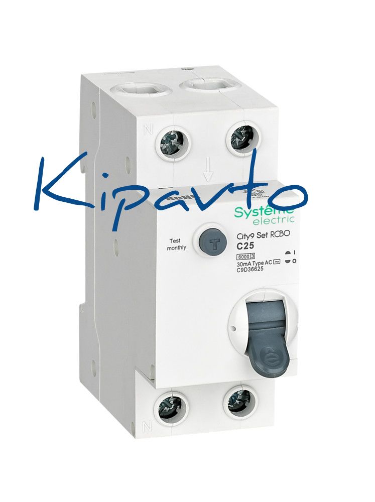 Автоматические выключатели дифференциального тока (АВДТ) серии City9 Set Systeme Electric,1P+N, номинальный ток 25 А, характеристика С, Icn - 6 кА, ток утечки 30 мА, тип АС. АВДТ применяется в электрических сетях напряжением 230В. Предназначен для защиты сети от перегрузок, людей от поражения электрическим током и токов короткого замыкания. Уставка по току утечки 30 мА обеспечивает гарантированную защиту людей при прямом прикосновении. Кнопка тест обеспечивает проверку работоспособности аппарата. Крепление на DIN-рейку шириной 35 мм. Безопасные клеммы.