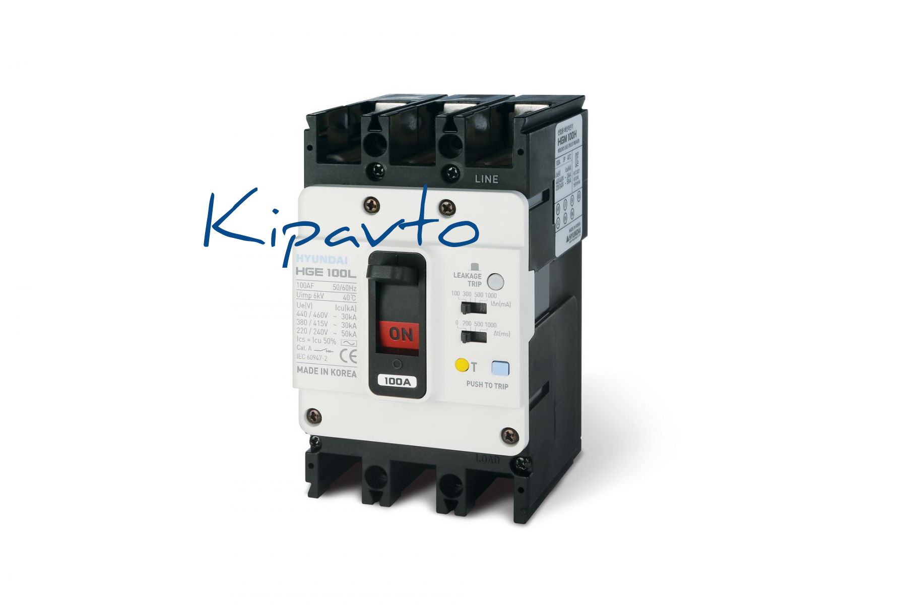 Выключатель автоматический диф. тока типа HGE, типоразмера 100AF, арт.HGE100L2PG5S0000C00080 (80А, 100мА, 30кА, 2 полюса, переднее подключение)