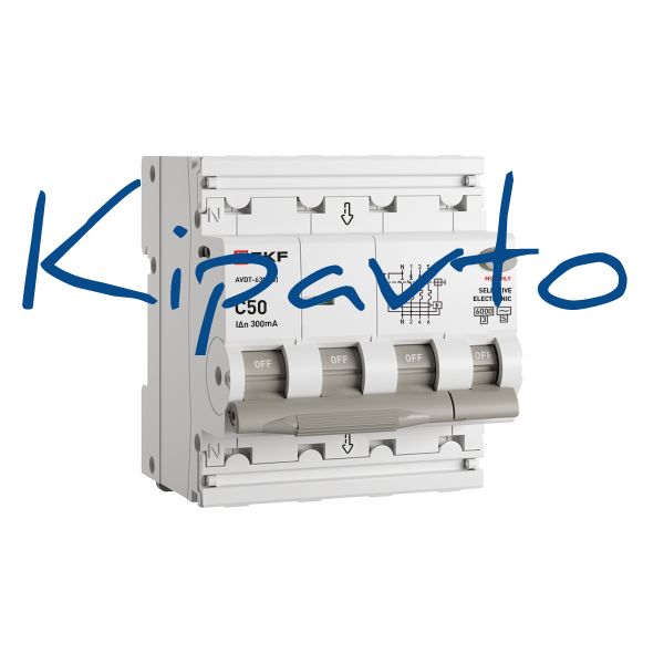 Комплектация: диф. автомат АВДТ-63N 3P+N 50А (C) 300мА (AC-S) эл 6кА PROXIMA EKF
