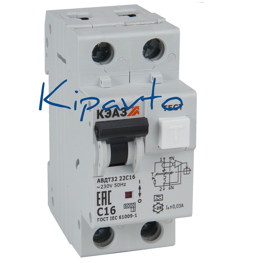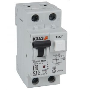 Выключатель автоматический дифференциального тока АВДТ с защитой от сверхтоков 2П 16А 30мА А Автоматический выключатель дифференциального тока АВДТ32-22C16-A-УХЛ4