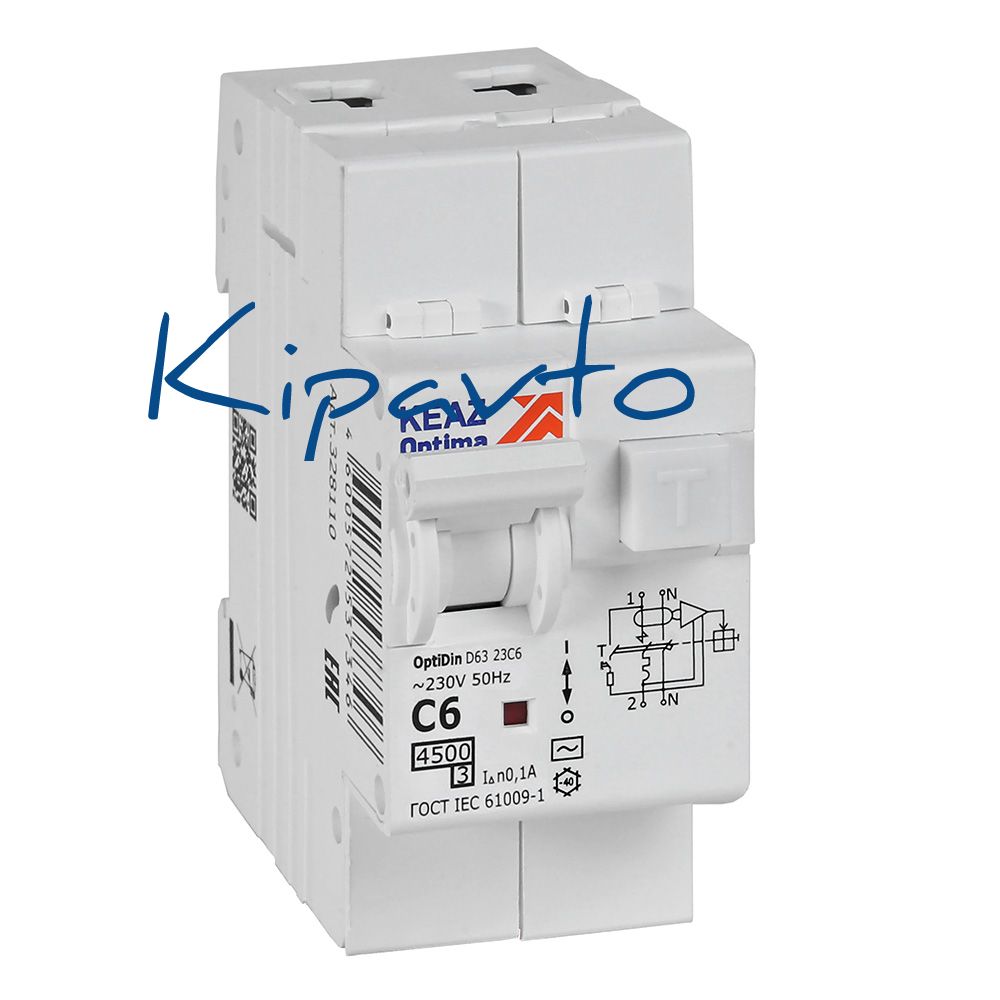Выключатель автоматический дифференциального тока АВДТ с защитой от сверхтоков 2П 6А 100мА AC 4,5кА OptiDin D63-23C6-AC-У3
