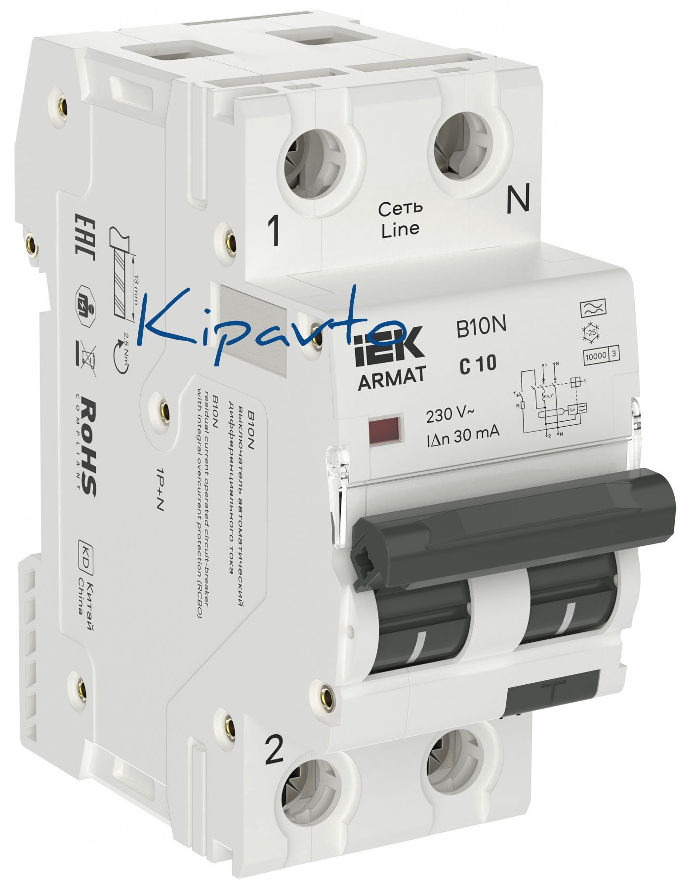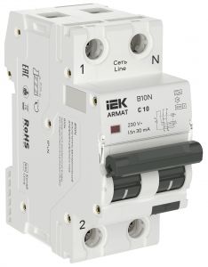 Выключатель автоматический дифференциального тока B10N 1P+NP C10 30мА тип A (36мм)