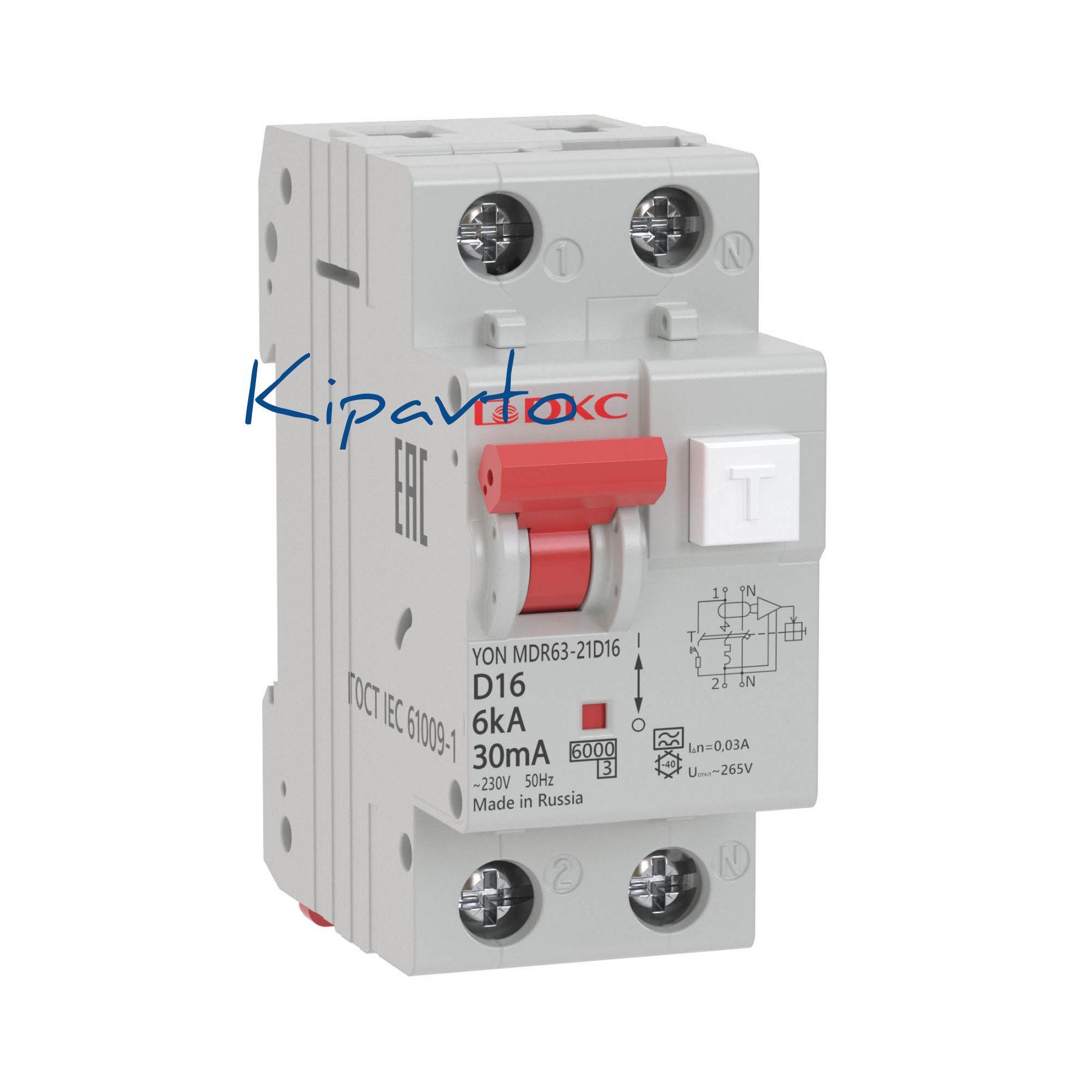 Выключатель автоматический дифференциального тока двухполюсный MDR 63, 10А, 30мА, тип A, C, 6кА, электронный, серии YONPRO