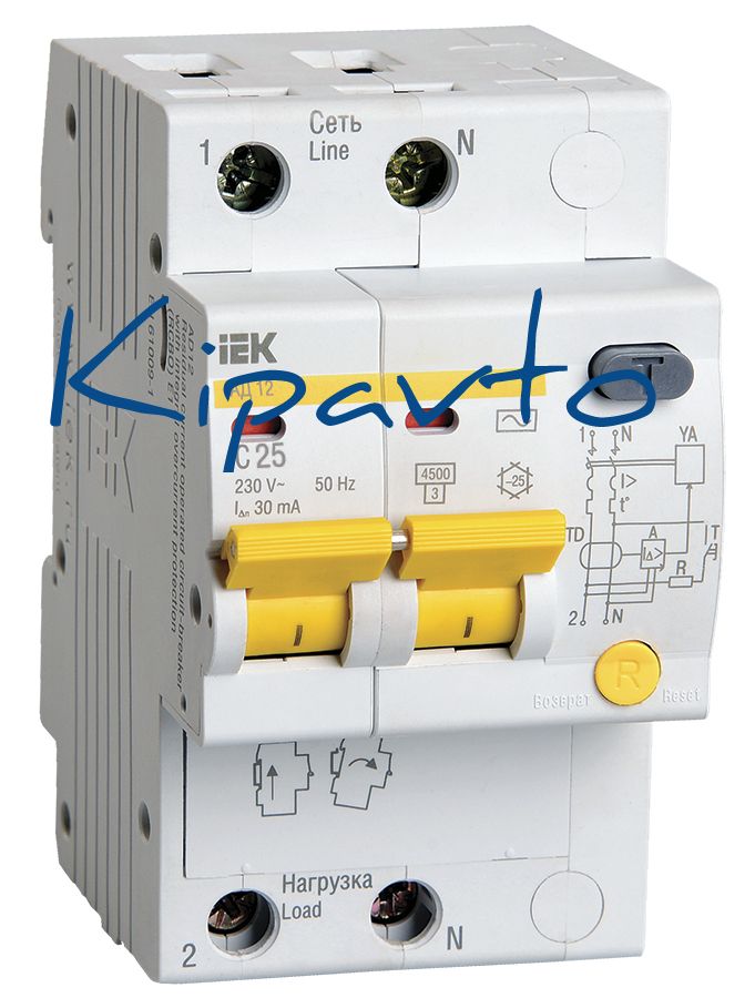 Выключатель автоматический дифференциальный АД-12 2п 25А 30мА С