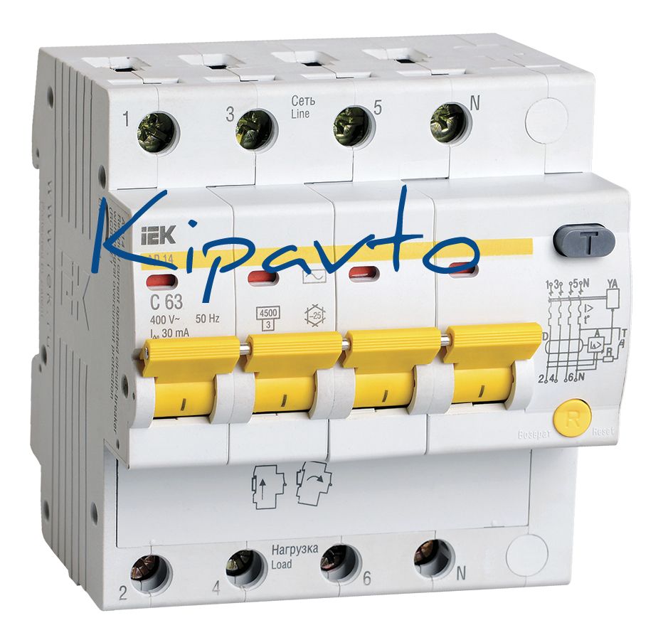 Выключатель автоматический дифференциальный АД-14 4п 63А 30мА С