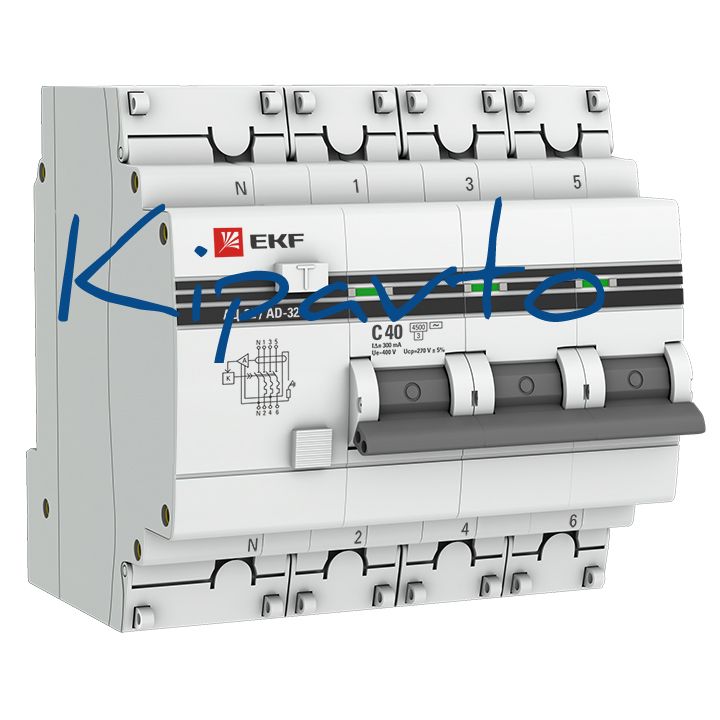 Комплектация: АД-32 3P+N 40А (С) 300мА тип (АС) эл. 4,5кА EKF PROxima