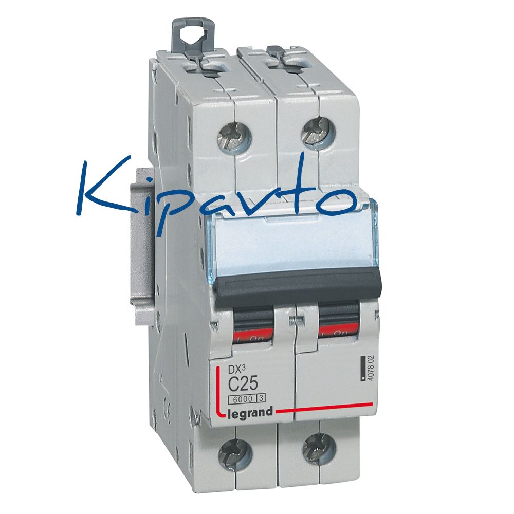 Выключатель автоматический DX 6000 - 10 кА - тип характеристики C - 2П - 230/400 В~ - 25 А - 2 модуля