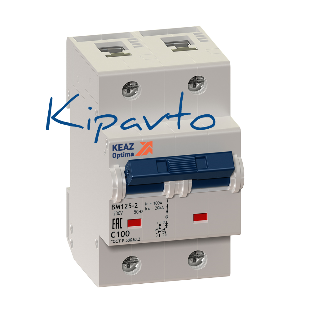 Модульный автоматический 2 полюсный выключатель переменного тока с предельной коммутационной способностью при переменном токе 20 кА на номинальный ток 80 А. Модульные автоматические выключатели OptiDinВМ125 предназначены для защиты электрических цепей от перегрузки и токов короткого замыкания, проведения тока в нормальном режиме и оперативных включений и отключений указанных цепей.