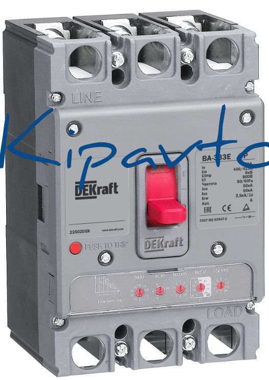 Автоматические выключатели в литом корпусе ВА-333Е DEKraft, с электронным расцепителем, 3P, ном. напряжение 400/415 В, ном. ток 250 А, Uimp 8 кВ. Автоматические выключатели в литом корпусе ВА-333Е имеют категорию применения B, отличаются эффективным гашением дуги, расширенным диапазоном рабочих температур, безопасностью и удобством, возможностью установки до трех доп. функций, наличием индикации состояния электронного расцепителя и широким выбором уставок. В комплект поставки входят межфазные перегородки.