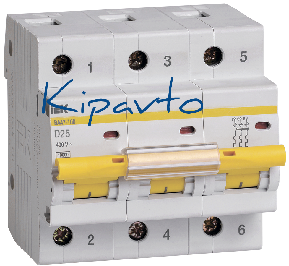 Выключатель автоматический трехполюсный 25А D ВА47-100 10кА