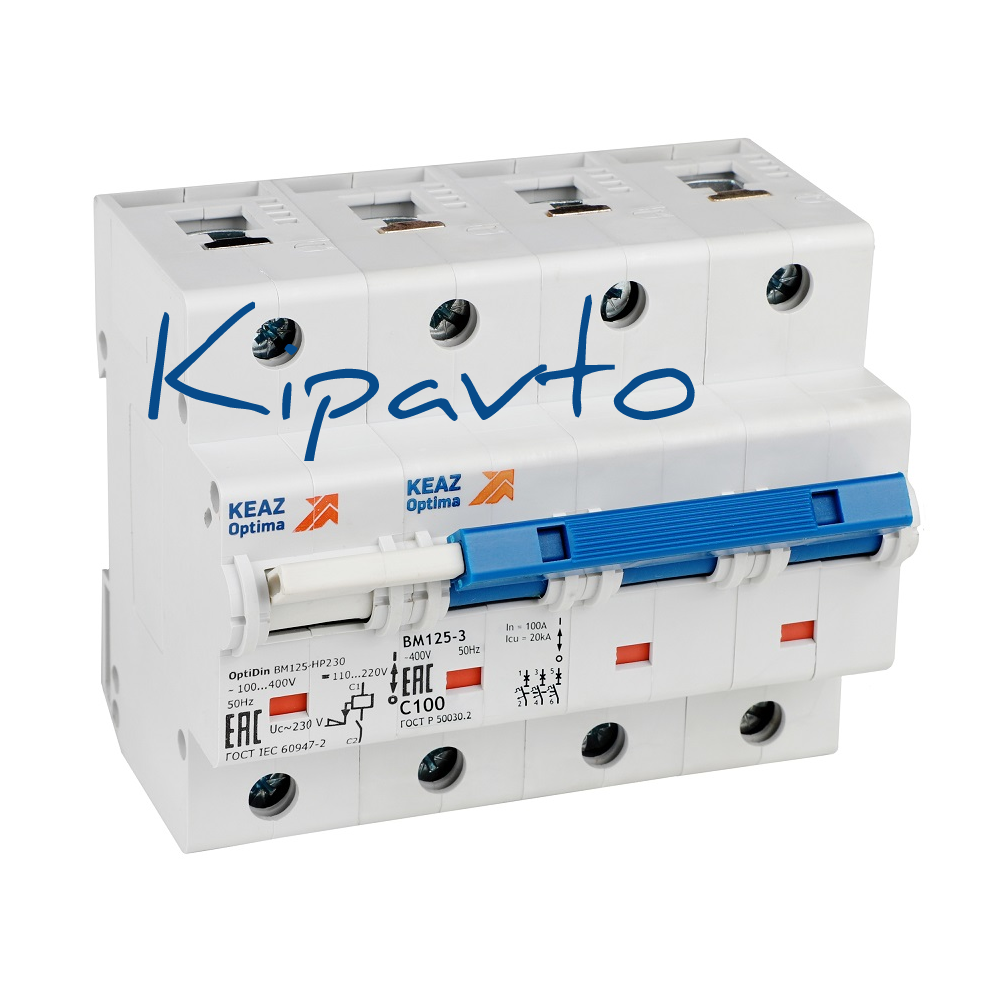 Выключатель автоматический трехполюсный 80А С с независимым расцепителем OptiDin BM125-3C80-НР-8ln-УХЛ4