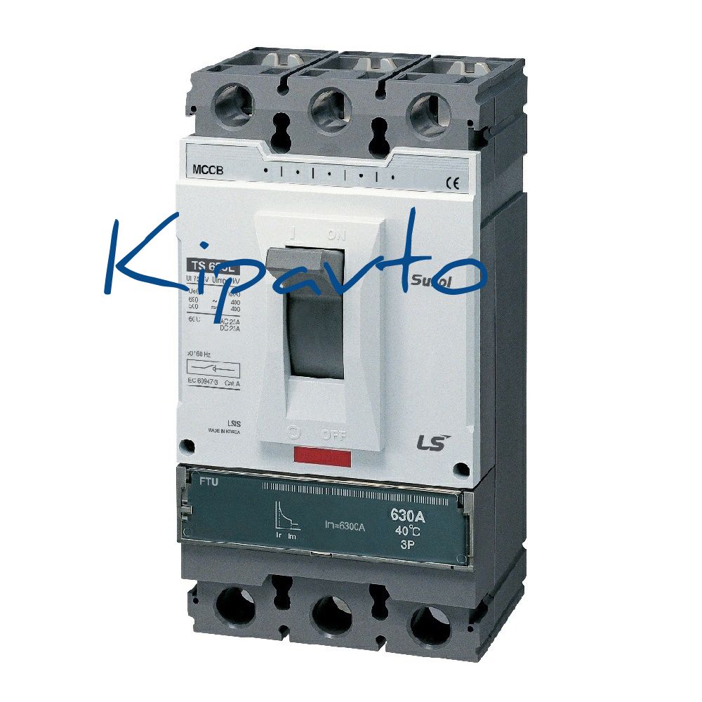 Силовой 3 полюсный автоматический выключатель переменного тока в литом корпусе на номинальный ток 400 А, с термомагнитным нерегулируемым расцепителем с отключающей способностью 65кА. Трехполюсные автоматические выключатели LS Electric типа Susol TS предназначены для применения в электрических цепях с напряжением 690 В переменного тока частотой 50 гЦ, их защиты от токов короткого замыкания, токов перегрузки, а также для нечастых оперативных включений и отключений.