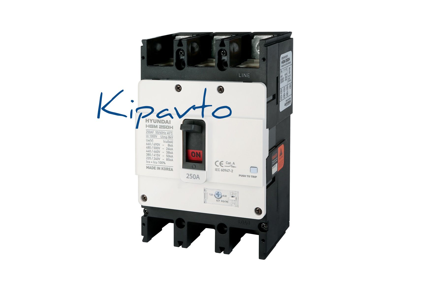 Выключатель автоматический в литом корпусе типа HGM, типоразмера 250AF, арт.HGM250H3PT4S0000C00125F (125А, 38кА, 3 полюса, регулируемый термомагнитный расцепитель, переднее подключение)