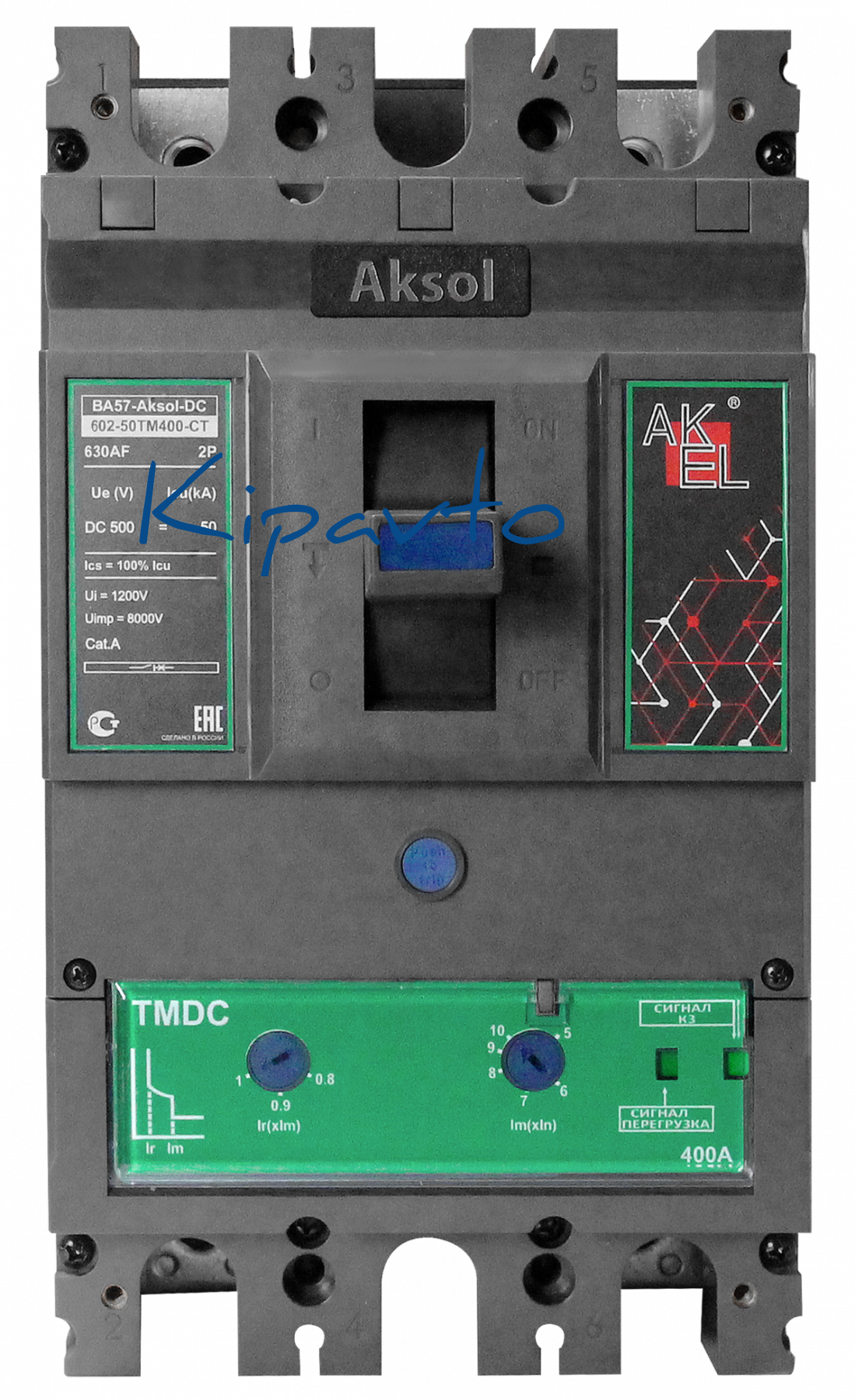 Выключатель автоматический в литом корпусе ВА57-DC-AKSOL-602-50ТМ400-CT 2P/400А/ТМ/50кА