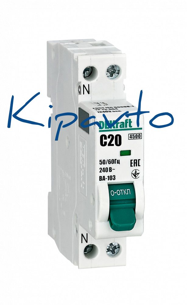 Автоматический выключатель серии ВА-103 NEW Dekraft, 1P+N, номинальный ток 20 А, характеристика C, отключающая способность 4, 5 кА. Компактный аппарат, ширина 18мм. 5 монолитных заклепок повышают прочность корпуса аппарата. Окошко-индикатор всегда показывает состояние контактов вне зависимости от положения рукоятки управления. Боковые каналы охлаждения повышают стабильность работы при высоких температурах окружающей среды. Есть возможность установки дополнительных аксессуаров с левой стороны устройства. Аппарат на 100% совместим с корпусами и оболочками Dekraft, Systeme Electric.