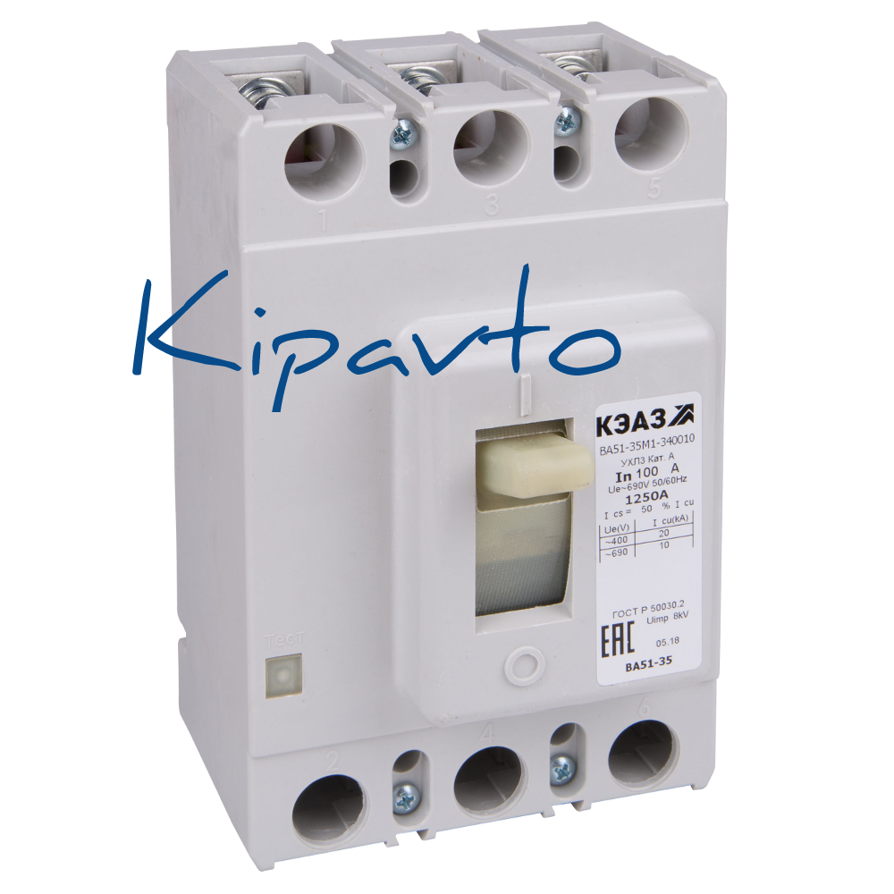 Силовой 3 полюсный автоматический выключатель переменного тока в литом корпусе на номинальный ток 400 А. Трехполюсные автоматические выключатели КЭАЗ типа ВА 51-35 предназначены для применения в электрических цепях с напряжением 440 постоянного / 690 В переменного тока частотой 50 и 60 Гц, их защиты от токов короткого замыкания, токов перегрузки, а также для нечастых оперативных включений и отключений.