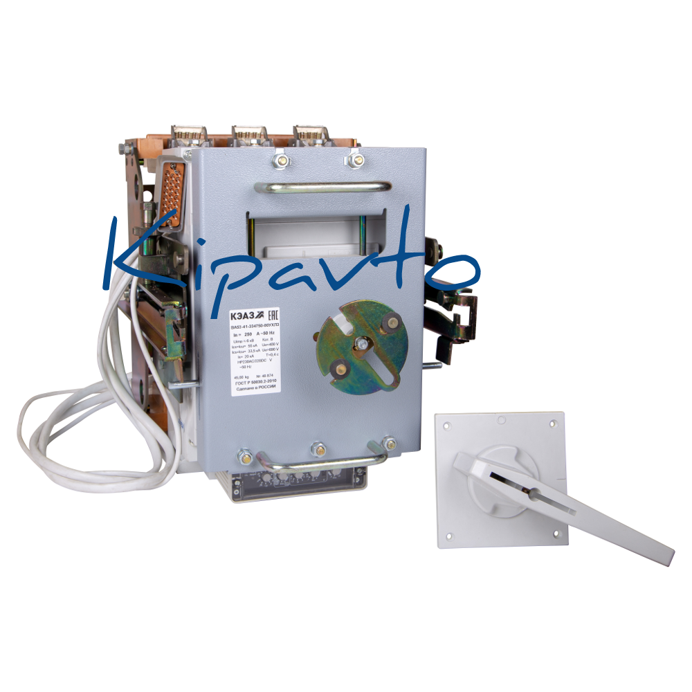 Силовой 3 полюсный автоматический выключатель переменного тока в литом корпусе на номинальный ток 250 А. Выключатели КЭАЗ предназначены для применения в электрических цепях переменного тока частоты 50, 60 Гц напряжением 690 В, для нечастых оперативных включений и отключений (до 6 в час), указанных цепей и защиты электрооборудования от перегрузок и коротких замыкании, а также нечастых прямых пусков асинхронных двигателей. Выключатели изготавливаются с полупроводниковым максимальным расцепителем тока на базе микроконтроллера Almega 16L.