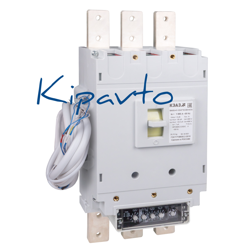 Силовой 3 полюсный автоматический выключатель переменного тока в литом корпусе на номинальный ток 1000 А. Выключатели КЭАЗ предназначены для применения в электрических цепях переменного тока частоты 50, 60 Гц напряжением 690 В, для нечастых оперативных включений и отключений (до 6 в час), указанных цепей и защиты электрооборудования от перегрузок и коротких замыкании, а также нечастых прямых пусков асинхронных двигателей. Выключатели изготавливаются с полупроводниковым максимальным расцепителем тока на базе микроконтроллера Almega 16L.