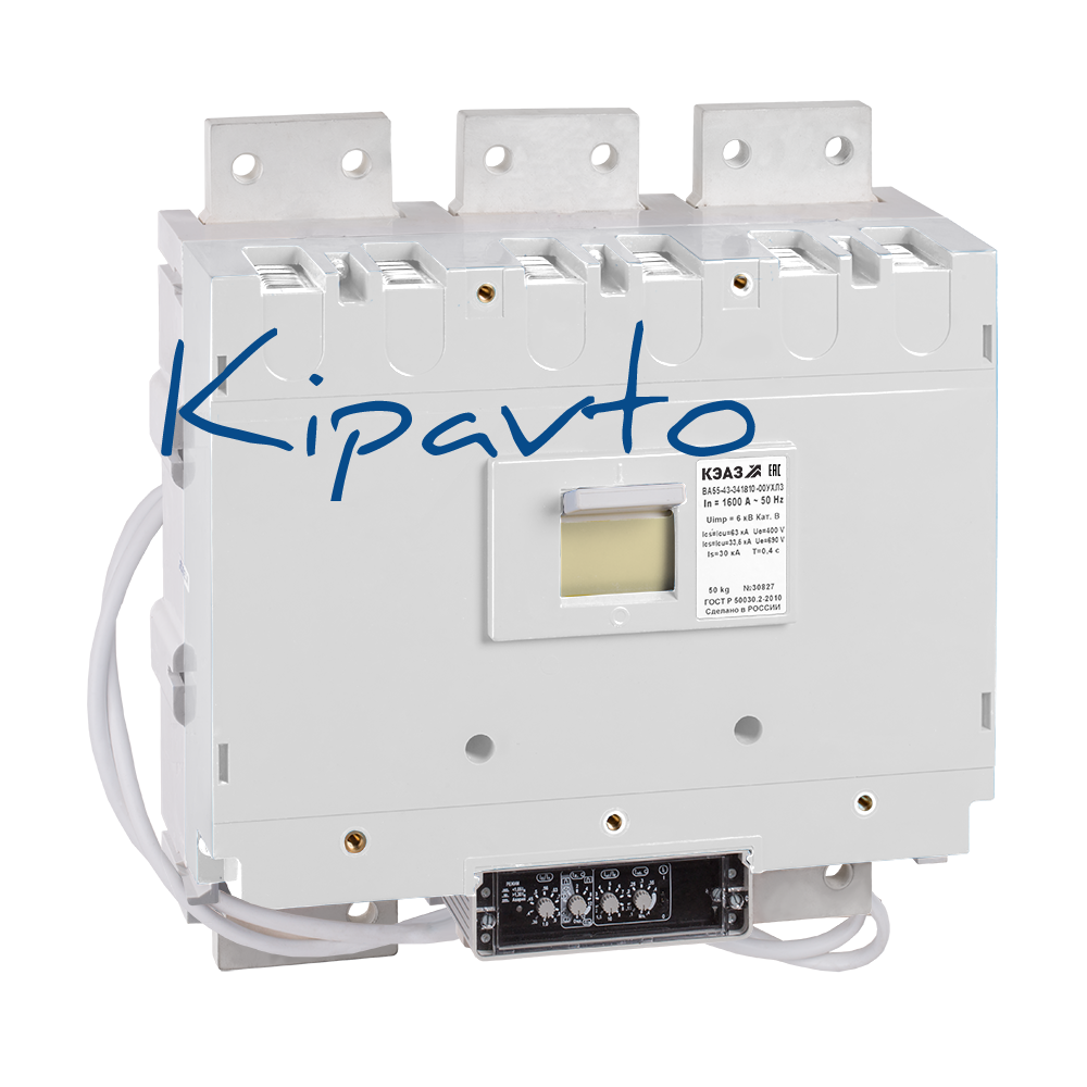 Силовой 3 полюсный автоматический выключатель переменного тока в литом корпусе на номинальный ток 2000 А. Выключатели КЭАЗ предназначены для применения в электрических цепях переменного тока частоты 50, 60 Гц напряжением 690 В, для нечастых оперативных включений и отключений (до 6 в час), указанных цепей и защиты электрооборудования от перегрузок и коротких замыкании, а также нечастых прямых пусков асинхронных двигателей. Выключатели изготавливаются с полупроводниковым максимальным расцепителем тока на базе микроконтроллера Atmega 16L.