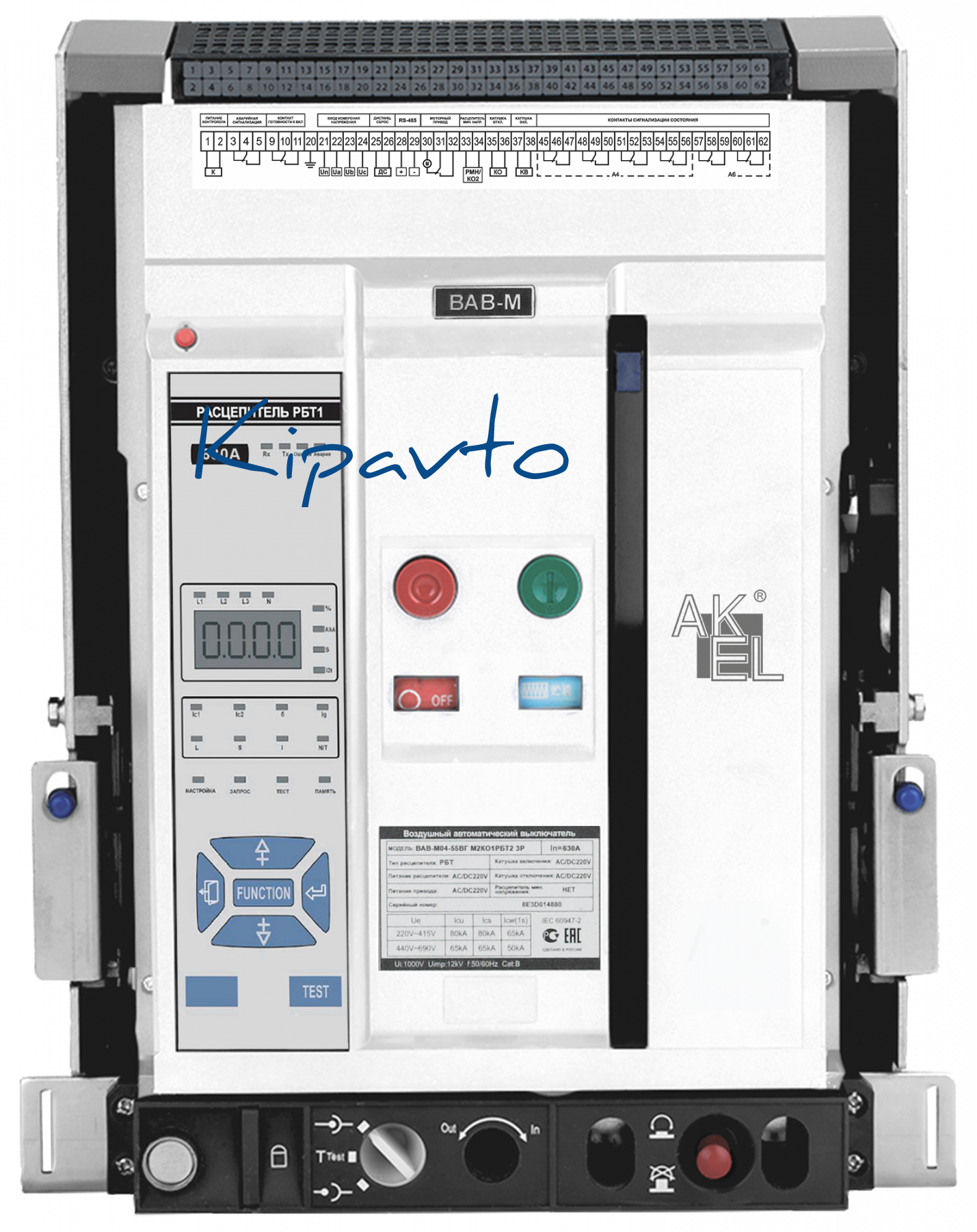 Выключатель автоматический воздушный ВАВ-М06-55ВГ М2КО1РБТ2 3P/630A/РБТ (питание 220В AC/DC)/55 кА