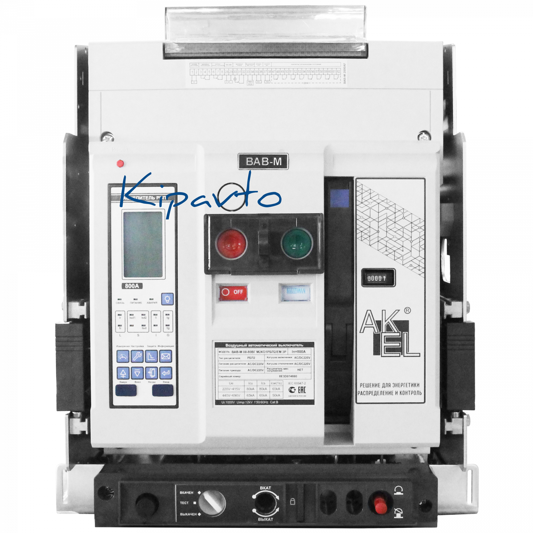 Выключатель автоматический воздушный ВАВ-М08-80ВГ М2КО1РБП2/ЕМ 3P/800A/РБП (питание 220В AC/DC)/80 кА