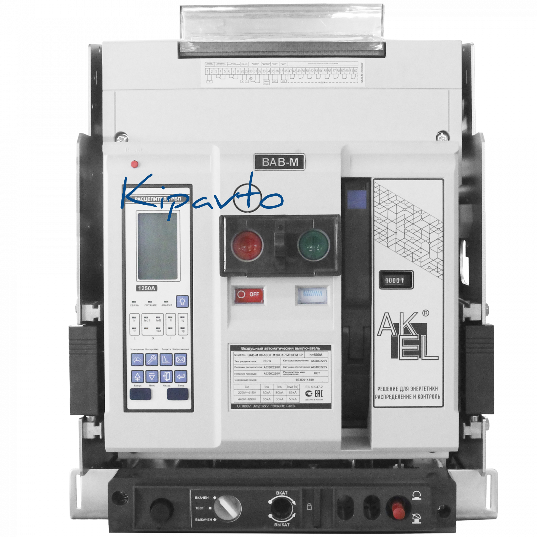 Выключатель автоматический воздушный ВАВ-М13-80ВГ М2КО1РБП2/ЕМ 3P/1250A/РБП (питание 220В AC/DC)/80 кА