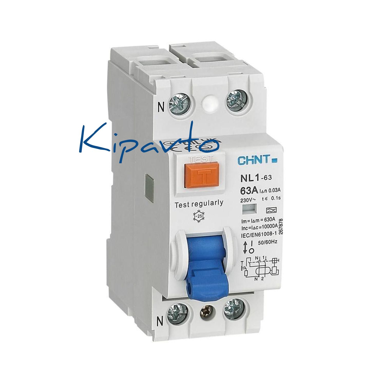 Выключатель дифференциального тока NL1-63 2P 63А 300мА 10кА тип A AX (R)