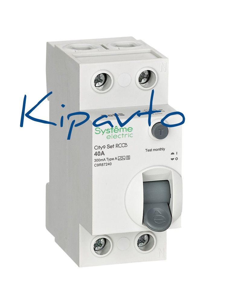 Выключатель дифференциального тока (ВДТ) или устройство защитного отключения (УЗО) серии City9 Set Systeme Electric, селективный, 2-полюсный, номинальный ток 40А, ток утечки 300 мА, тип А, электромеханический. Применяется в электрических сетях напряжением 230В. ВДТ типа S устанавливается на вводе и служит для обеспечения полной селективности благодаря задержке срабатывания. Кнопка тест обеспечивает проверку работоспособности аппарата. Крепление на DIN-рейку шириной 35 мм. Подключение сверху и снизу. Безопасные клеммы с защитой от неправильного подключения.