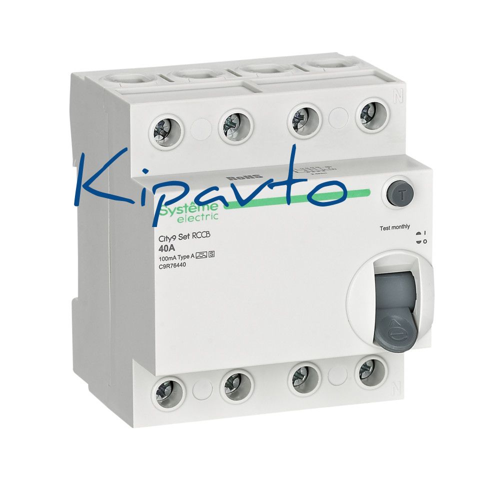 Выключатель дифференциального тока (ВДТ) или устройство защитного отключения (УЗО) серии City9 Set Systeme Electric, селективный, 4-полюсный, номинальный ток 40А, ток утечки 100 мА, тип А, электромеханический. Применяется в электрических сетях напряжением 400В. ВДТ типа S устанавливается на вводе и служит для обеспечения полной селективности благодаря задержке срабатывания. Кнопка тест обеспечивает проверку работоспособности аппарата. Крепление на DIN-рейку шириной 35 мм. Подключение сверху и снизу. Безопасные клеммы с защитой от неправильного подключения.