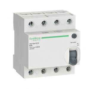 Выключатель дифференциального тока (ВДТ) или устройство защитного отключения (УЗО) серии City9 Set Systeme Electric, селективный, 4-полюсный, номинальный ток 63А, ток утечки 100 мА, тип А, электромеханический. Применяется в электрических сетях напряжением 400В. ВДТ типа S устанавливается на вводе и служит для обеспечения полной селективности благодаря задержке срабатывания. Кнопка тест обеспечивает проверку работоспособности аппарата. Крепление на DIN-рейку шириной 35 мм. Подключение сверху и снизу. Безопасные клеммы с защитой от неправильного подключения.