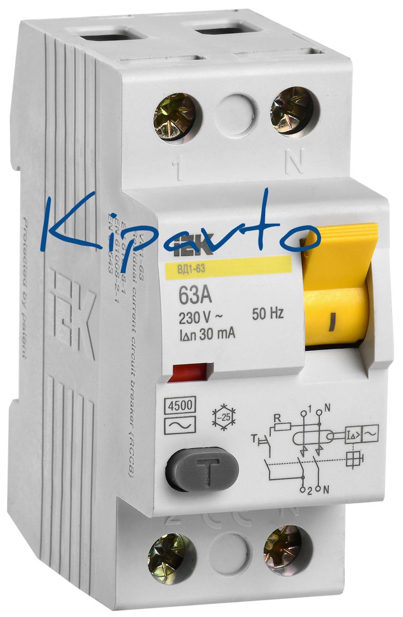 Выключатель дифференциального тока (УЗО) 2п 63А 30мА ВД1-63 АС(Электромеханическое)