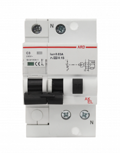 Выключатель дифференциальный автоматический АВДТ-ARD-1P+N-C3-30mA-ТипAC 1P+N/3A/C/AC/30mA/6kA