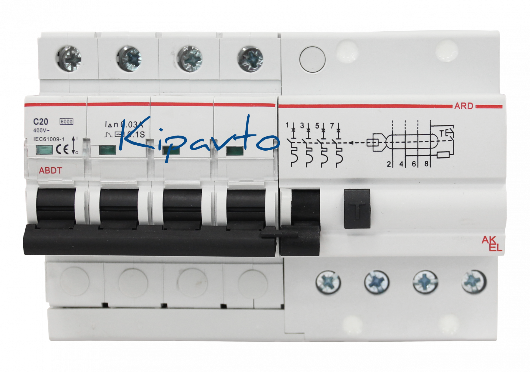 Выключатель дифференциальный автоматический АВДТ-ARD-4P-C20-30mA-ТипAC 4P/20A/C/AC/30mA/6kA