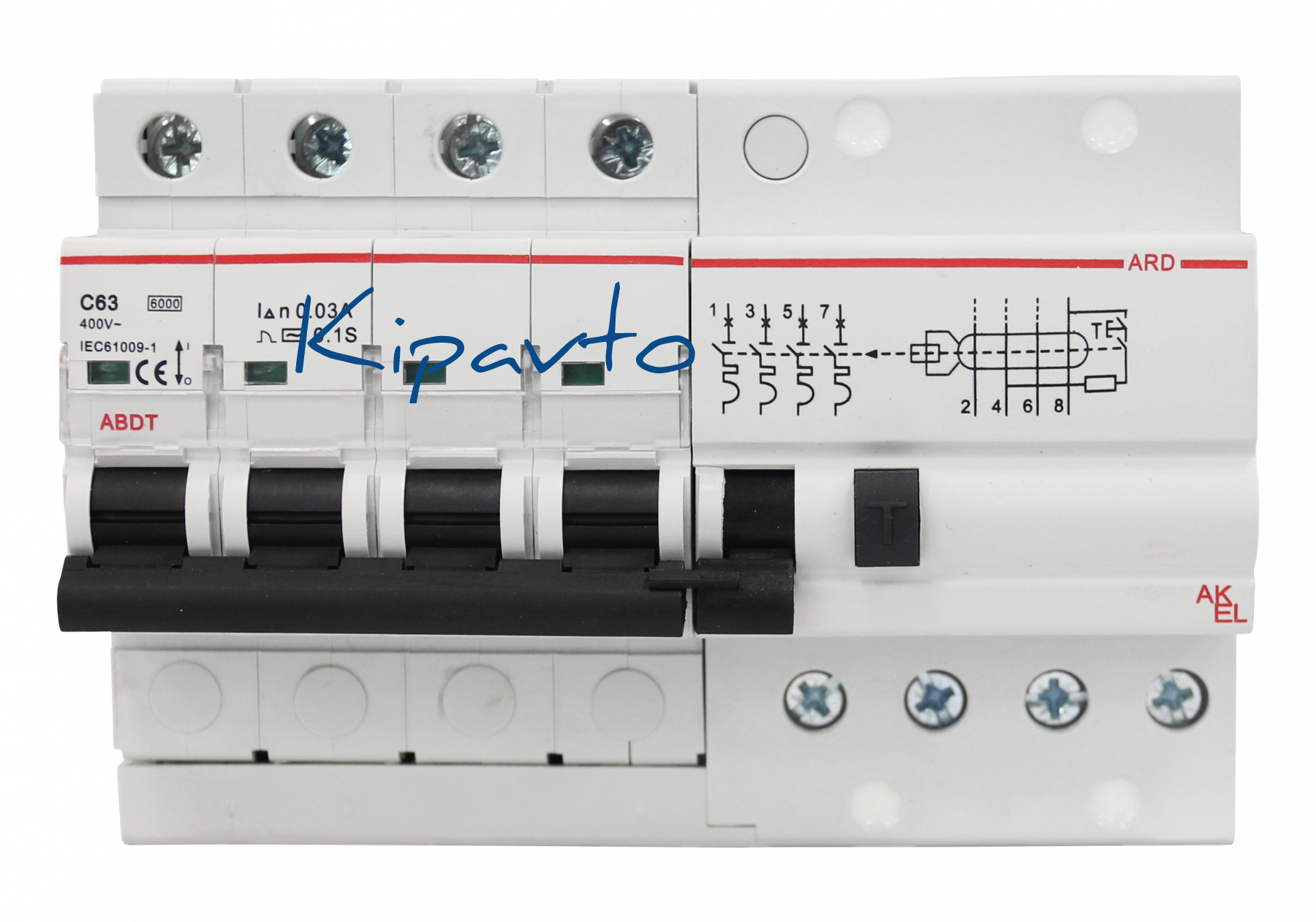 Выключатель дифференциальный автоматический АВДТ-ARD-4P-C63-30mA-ТипAC 4P/63A/C/AC/30mA/6kA