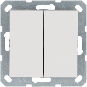 Выключатель двухклавишный 10A 250V~ с накладкой, цвет белый глянцевый