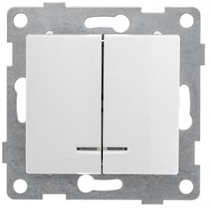 Выключатель двухклавишный Bravo инд, механизм, 10А, 250В, белый