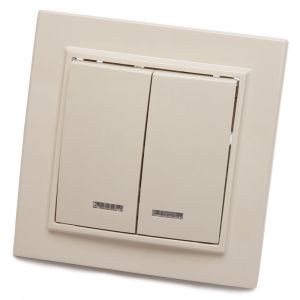 Выключатель двухклавишный c индикатором, Эрна, слоновая кость, Stekker