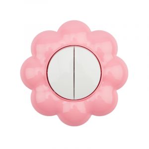 Выключатель двухклавишный KRANZ HAPPY Цветок скрытой установки, белый/розовый