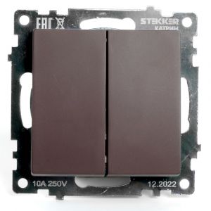 Выключатель двухклавишный (механизм), 250В, 10А, серия Катрин, шоколад, Stekker