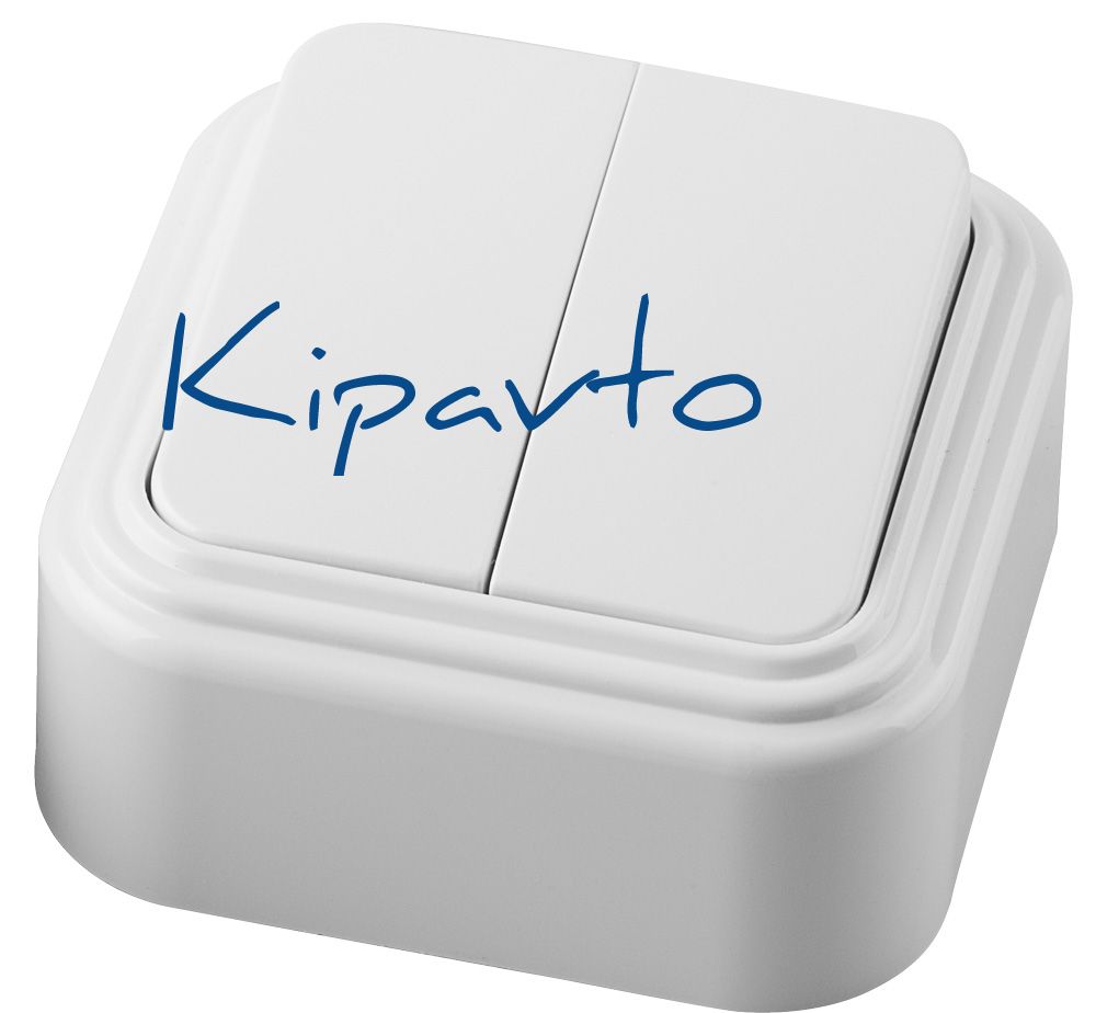 Выключатель двухклавишный открытой установки , 250В, 6А, IP20, белый,