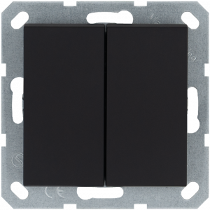 Выключатель двухклавишный проходной 10A 250V~ с накладкой, цвет черный матовый (soft touch)