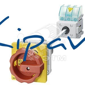 Выключатель главный аварийный 4п IU=16 P/AC-23A при 400V=7.5KW нижнего крепления на монтажную рейку или крепление двумя отверстиями поворотный привод желто-красный